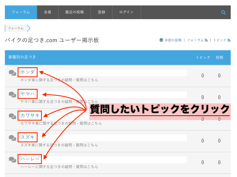 車種別の足つきレビュー、立ちゴケを防ぐ方法など、バイクの足つきに関する不安・疑問をライダー同士で協力して解消しましょう!先輩ライダーは豊富な知識・経験で不安なライダーを助けてください!初心者ライダーは恐れず積極的に質問してみましょう!ライダー同士で最高のバイクライフを創り上げましょう!